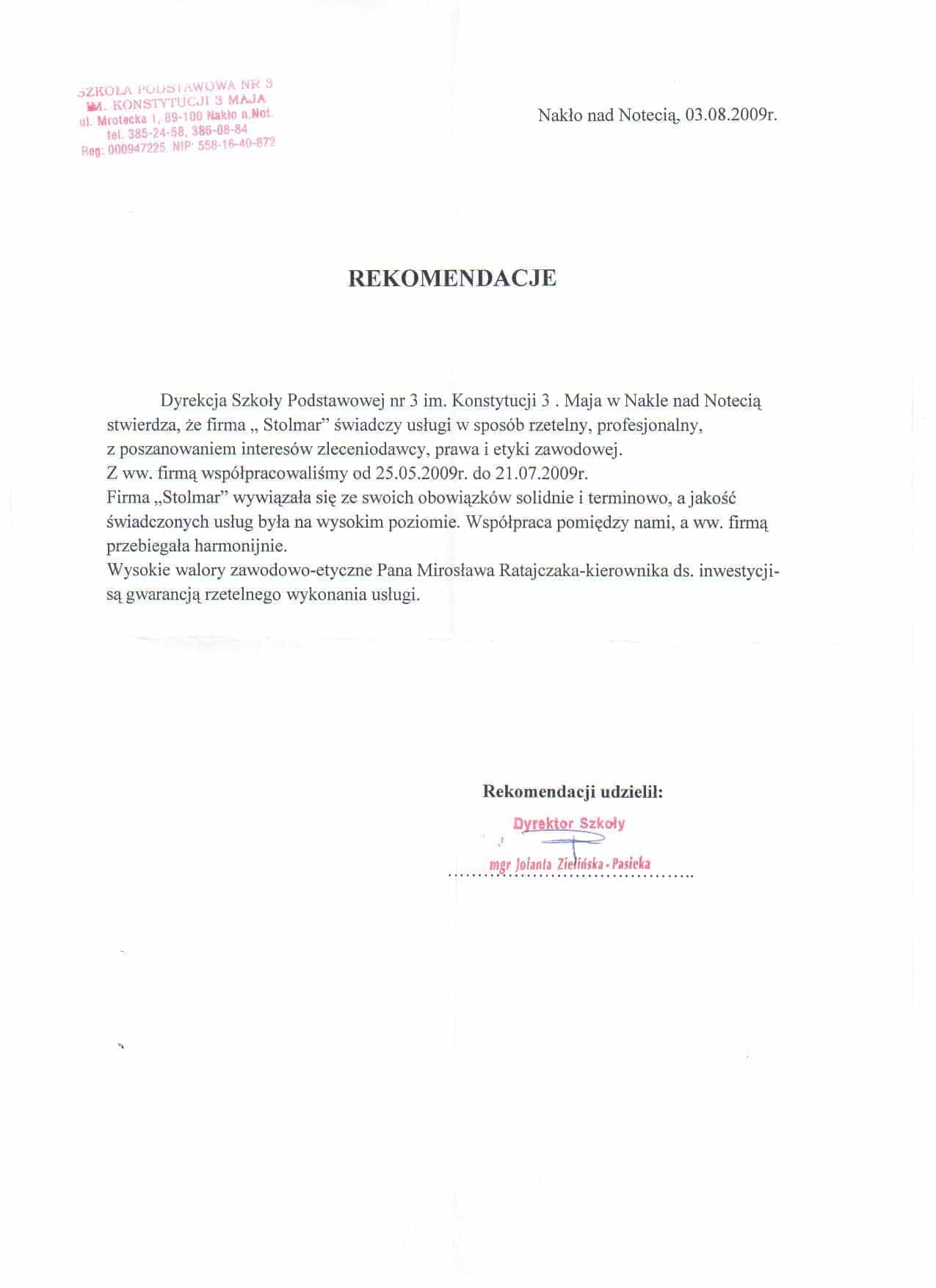- Empfehlung der Grundschule Nr. 3 in Nakło nad Notecią.