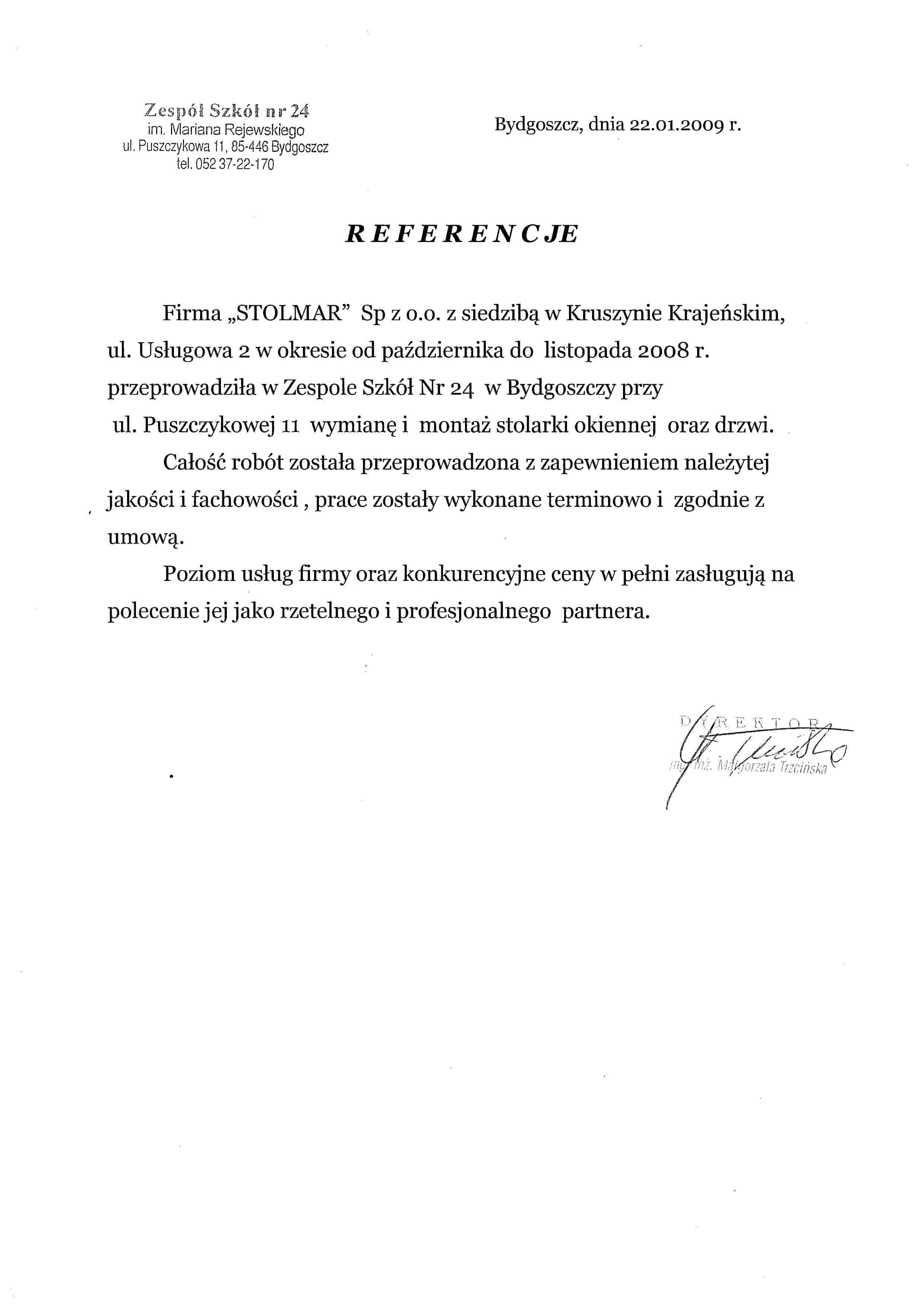 - Referenzen vom Schulkomplex Nr. 24 in Bydgoszcz. (Bromberg)